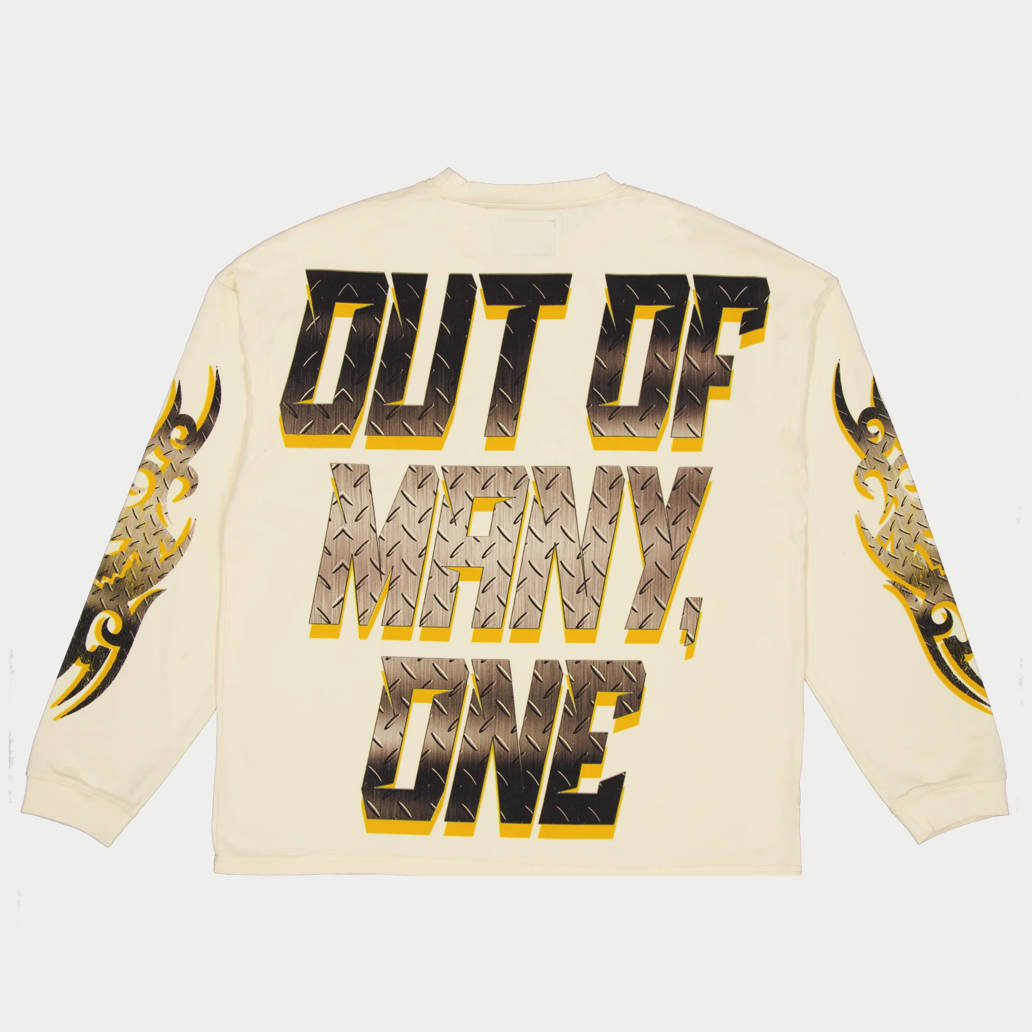 This long sleeve is crafted from 10oz mid-weight washed fabric and features a striking digital art piece.